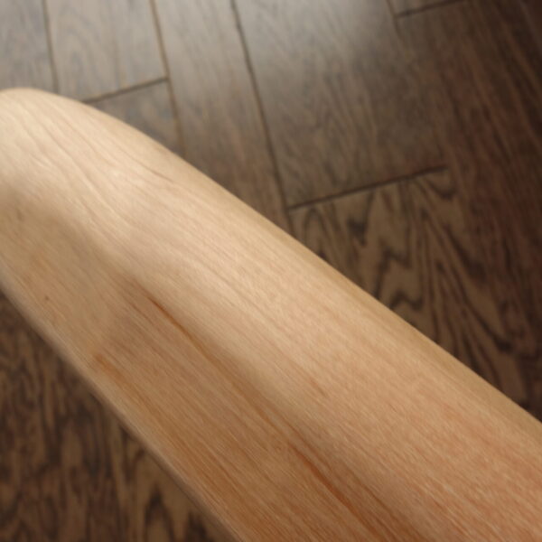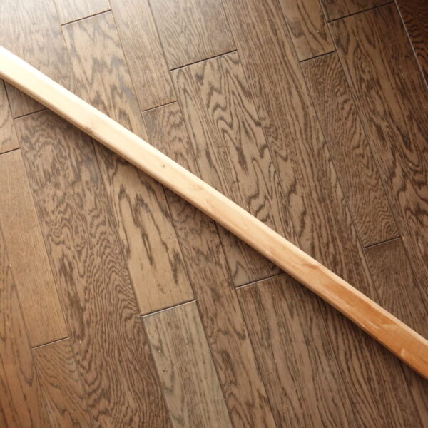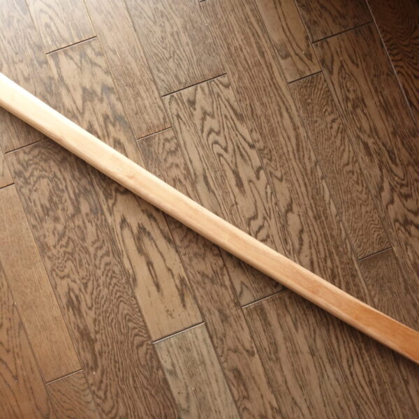 幹中心付近ですので色も濃く、大変硬い部分です。 重量もあり、自然木のオノオレカンバを肌で感じられます。 自然木特有の小さなヒビやワレがあります。 小さな節が何か所にありますが、強度には差し支えありません。 これがオシャレなワンポイントになるでしょう。 でも節があるために特別低価格です。 素振り用でしたらこのままで十分です。 長さ、重量がありますので、ヤスリがけをすればきれいな木刀になります。