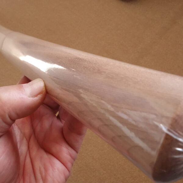 都城の新留木刀製作所さんに製作をお願いしました。 製作依頼から半年経過したものが出来上がってきました。 オノオレカンバ材は木扇などと同じ木から木取したものです。 次に出来上がってくるのには1年後になります。 貴重品なのであえて封をきってありません。 詳しい木目などをご覧になりたい場合は、開封して画像を載せます。