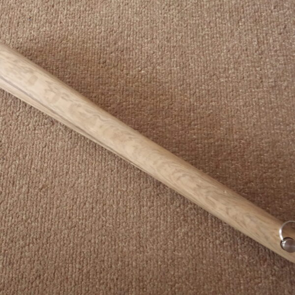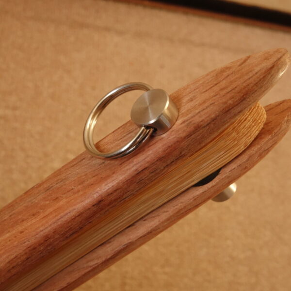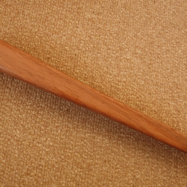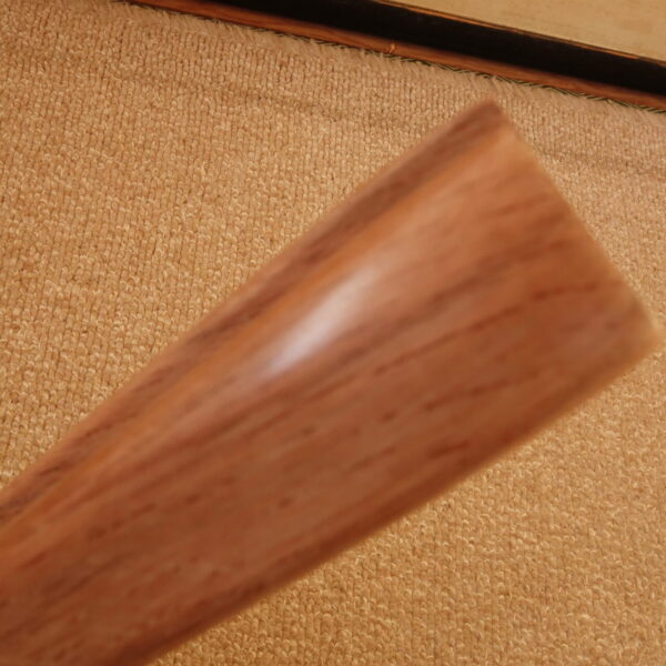 扇八郎の木扇は、いざという時の護身用を念頭に入れて製作していますので、通常の扇子とは違い、親骨がかなり太く作られています 。したがいまして、見た目はずんぐりむっくりした扇子です。 親骨の木目模様や太さなどもすべて違っており、同じものは一本もありません。 世界で一本だけの木扇です。 この木扇は、親骨が邪気を払い、扇子紙の末広がりが幸運を呼び込む木扇扇子です。