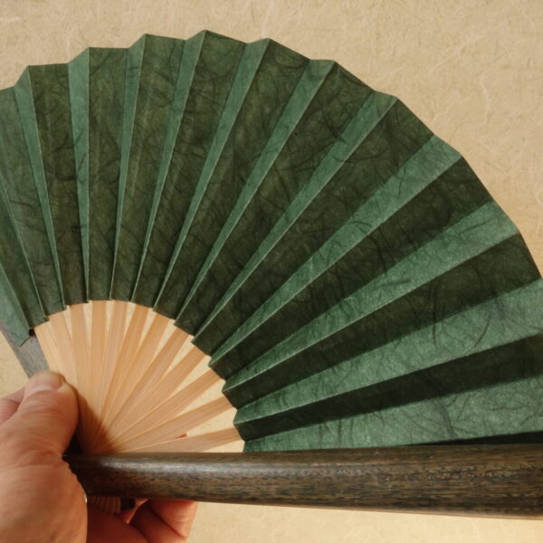 商 品 名: 7 寸 リグナムバイタ木扇 雲竜和紙 「みどり色」 京都伝統工芸士作