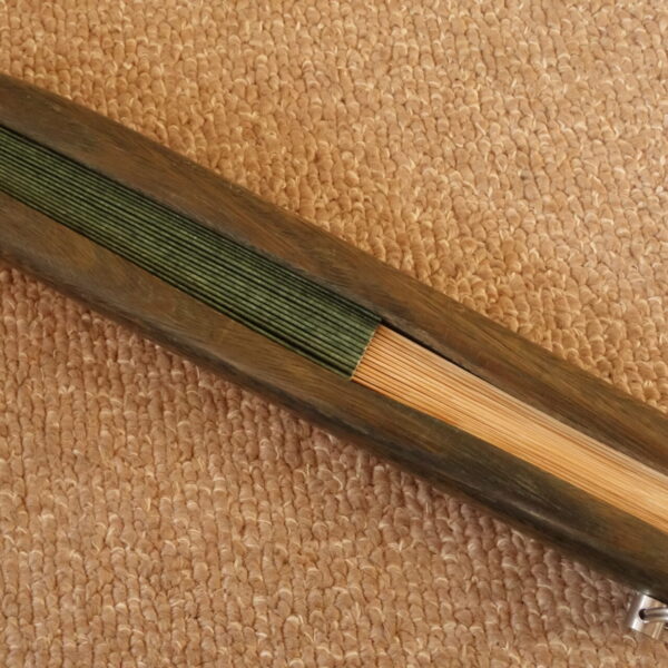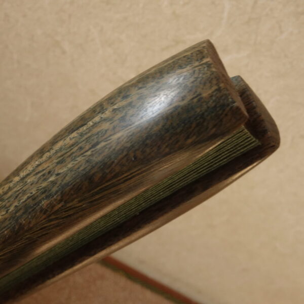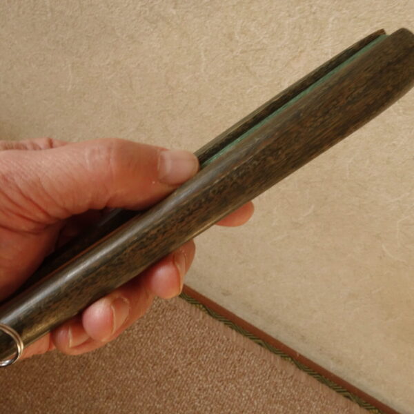 このリグナムバイタは、特に木質の良い部分を使用していますので、硬度および重量があります。 また、リグナムバイタ独特の濃くて甘い香りが強く、とても気持ちのよい気分になります。 最高品質です。 現在も親骨が緑系になっていますが、時間がたつともう少し色が濃くなるかもしれまん。
