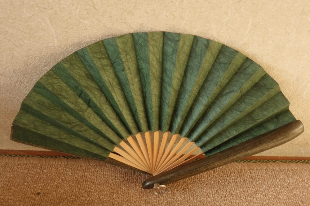 ● 商 品 名: 6寸 リグナムバイタ木扇 雲龍和紙 「みどり色」 京都伝統工芸士作