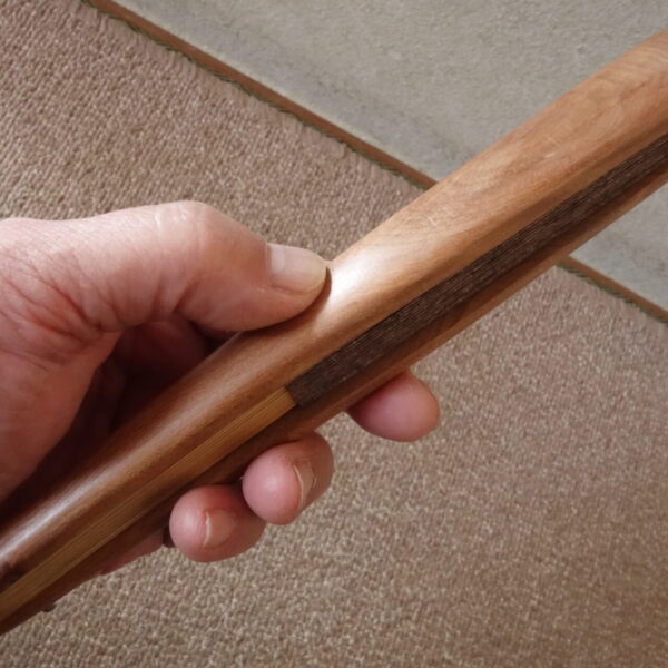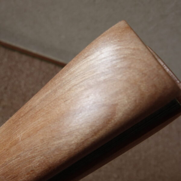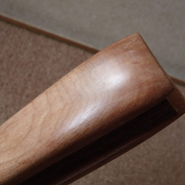 オノオレカンバ(斧折樺)は、静岡県以北で標高500m以上の山肌に根を張り、1ミリ幹が太くなるのに3年かかるという非常に堅い木です。 生息する地域は岩肌や環境のわるい地盤で育ちますので、苦節に耐え、真っすぐには育ちにくく曲がりくねって育っていきます。 そのため、節目も多く長尺の木取りができないので、長い材は貴重です。 あまりに硬いので、斧も折れる木と言われ、「斧折樺」の名があります。 自然林の中でも数が少なく成長が遅いため、ほとんど植林もされず、今では入手のむずかしい大変貴重な木となっています。 特に近年ではほとんど見ることができません。 また、この木は昔から「金のなる木」の別名があり大変縁起の良いものとされています。 木肌は乾いた布でこすっていますときれいな木肌になってきます。