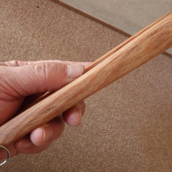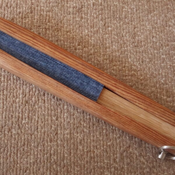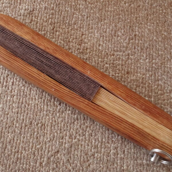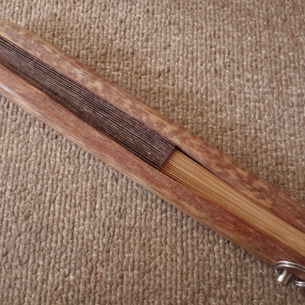 扇八郎木扇の親骨は、無着色・無塗装ですので、キズ等がある場合には、その状態がはっきりわかります。また、今では大変貴重な材種ですので、なるべく重量を減らさないように加工していますので、ゆがみが生じている場所もあります。もし、あまりに気になる場所がありましたら、ご自分で修正することが可能です。修正方法などが不安でわからない場合には、お気軽にお問い合わせください。扇八郎の木扇は、邪気を払い、扇子紙の末広がりが幸運を呼び込む木扇扇子です。