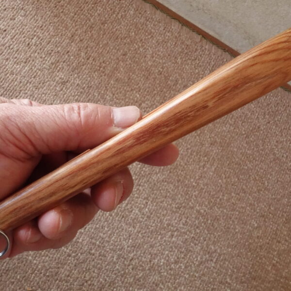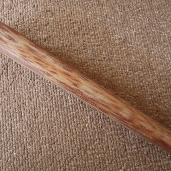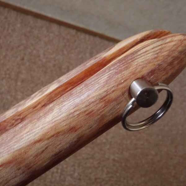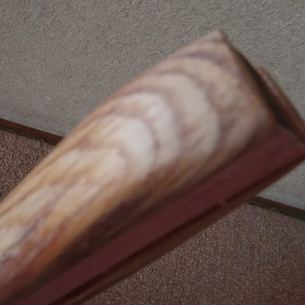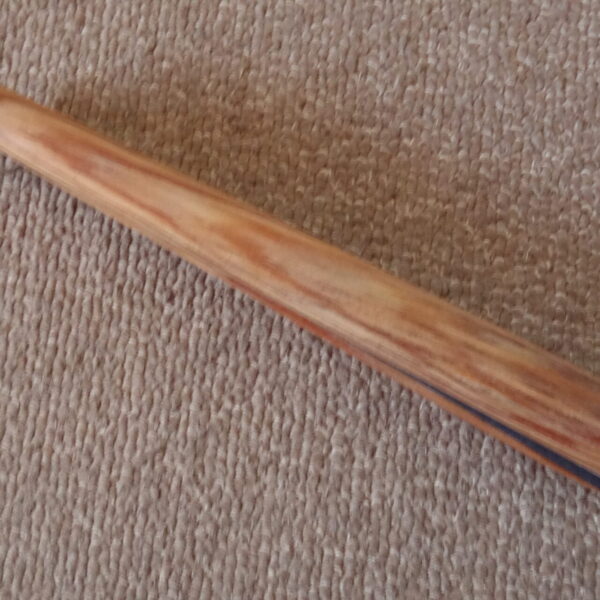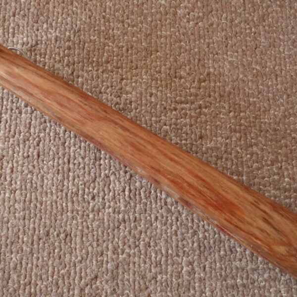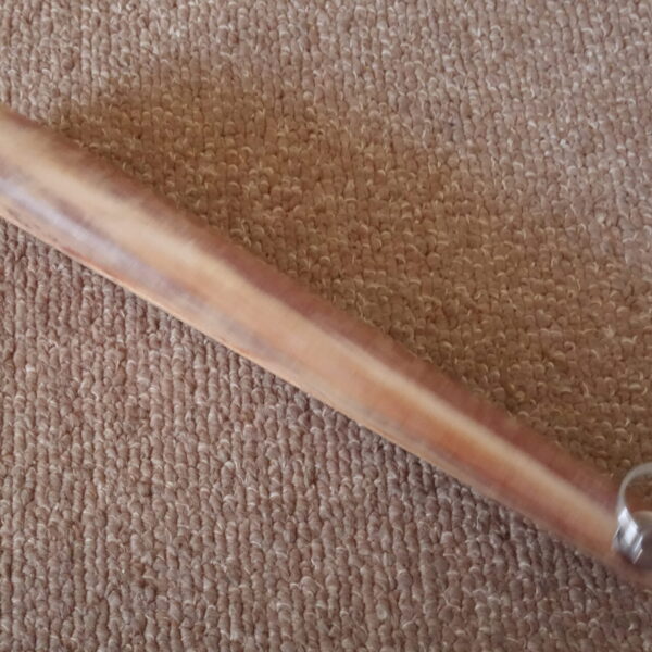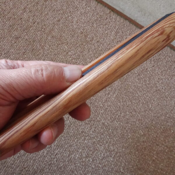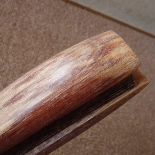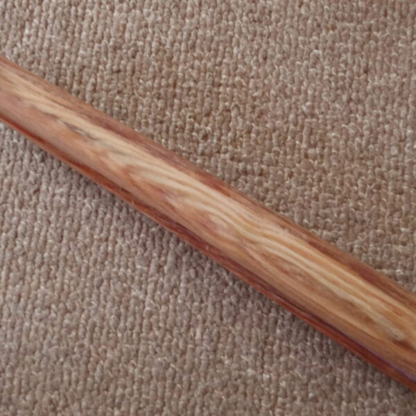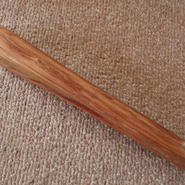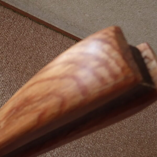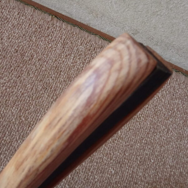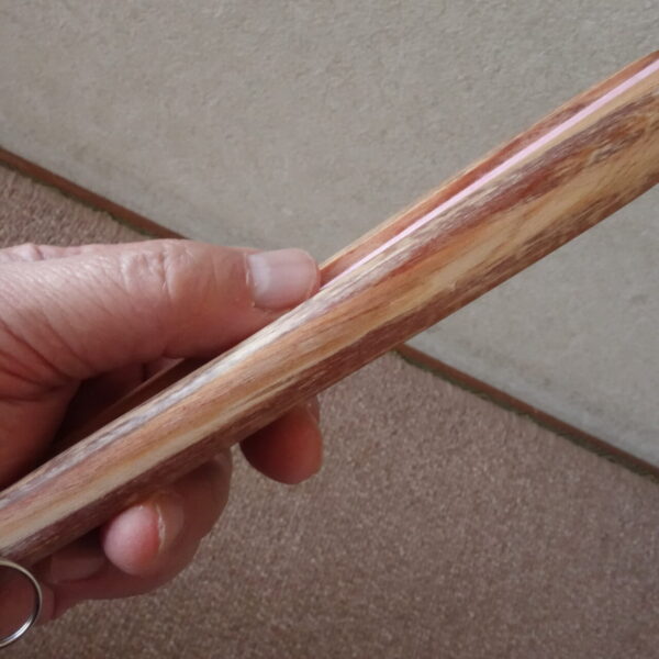 扇八郎の木扇は、通常の扇子とは少し違っていて、ある程度の護身もできるように意図的に親骨と握り部分が太く作られています。 特にこの肥松の木は大変柔らかいので、護身用には不向きなのですが、なんとか対応できるように考慮しています。 したがいまして、いわゆる、ずんぐりむっくりした形に仕上がっています。 現在320番手のペーパーまで磨いてありますが、今後これ以上のペーパーで研磨、そして、常時乾いた布で磨きこんでいただきますと、磨けば磨くほど艶が出て、飴色のすばらしい肥松木扇になります。 40年ほど長期乾燥させてありますが、まだほんの少しづつ脂分がにじみ出てきます。 磨き込んでいくうちにこれらは収まります。 磨き込みが楽しくなる魅力的な肥松木扇です。 出雲大社の大変ありがたい「肥松」をお守り代わりに持ち歩くのもいいのではないでしょうか。