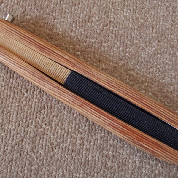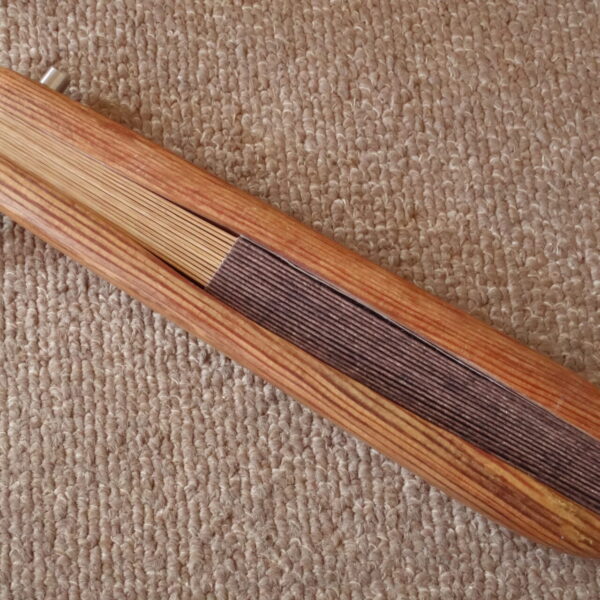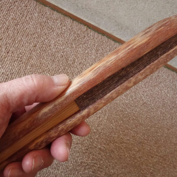脂が入りすぎていて片方の親骨の上部が変色しているように見えます。  次世代の残すべき肥松ですので親骨は極力削らずに太目にしてあります。